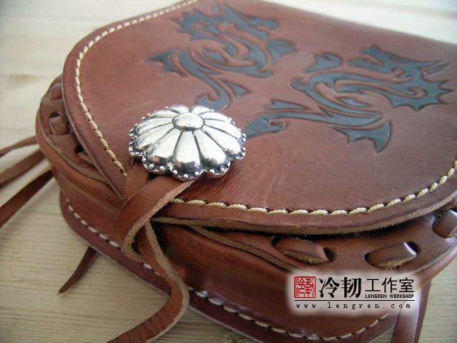 头层植鞣革制作,手工雕刻龙图案腰包