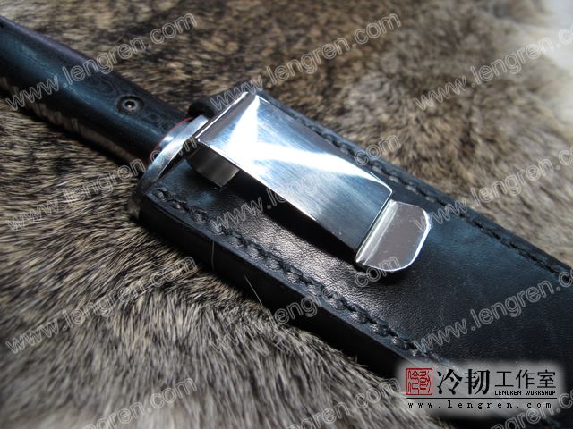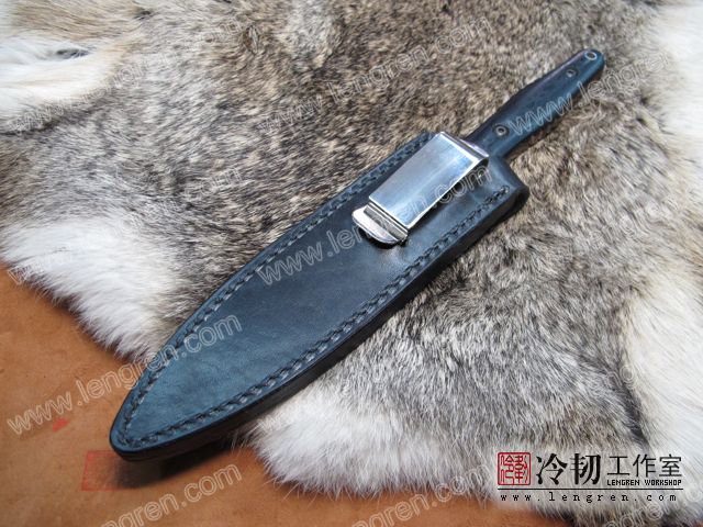 4mm头层牛皮缝制。刀鞘背面用金属卡子固定,可佩带在要带上。刀鞘前端三层缝制,刀刃不会划伤内部缝线。结实耐用。