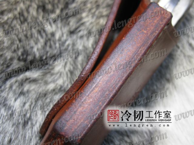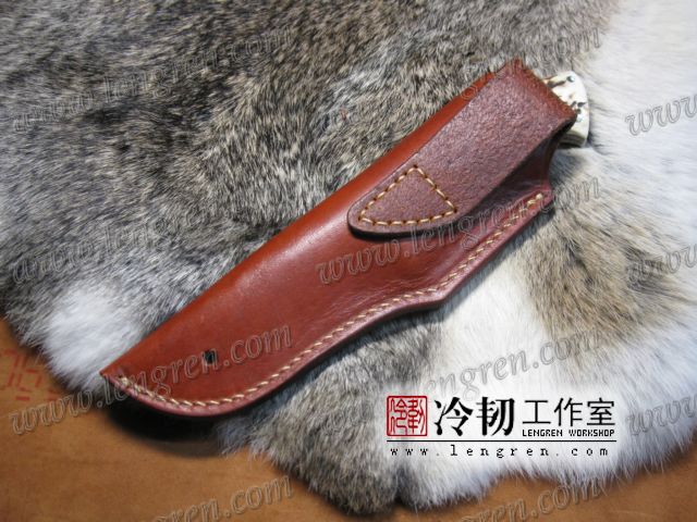 4mm头层牛皮缝制。刀鞘前端三层缝制,刀刃不会划伤内部缝线。结实耐用。
