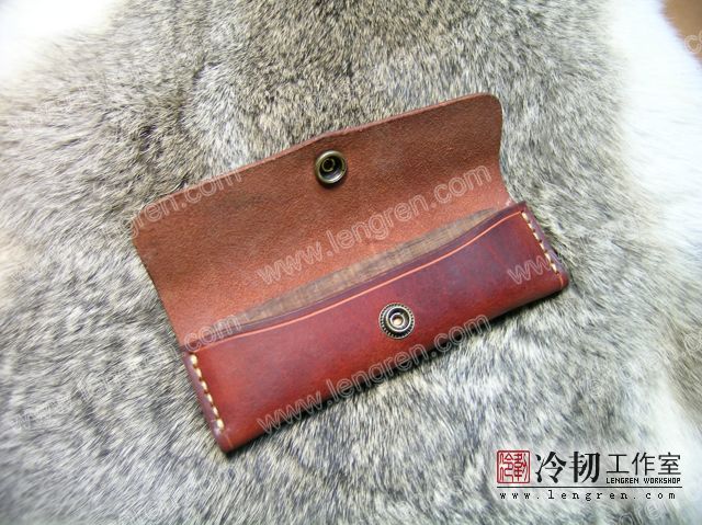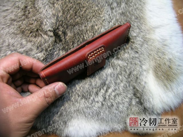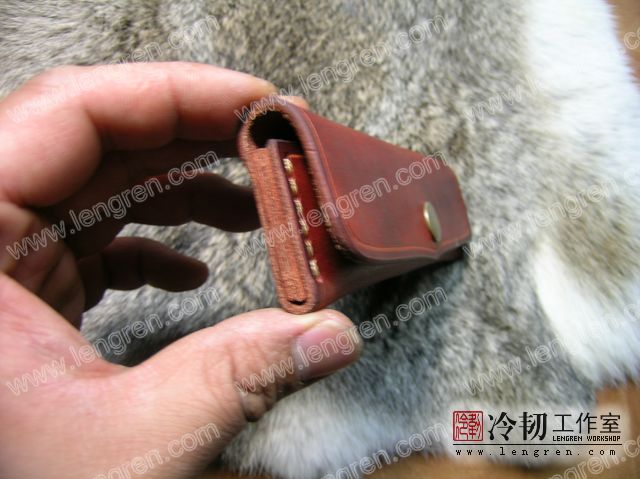 4mm头层牛皮缝制,可挂在皮带上,按扣固定。