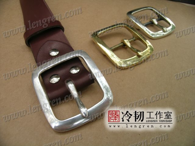 手工定制925银带扣,4mm头层牛皮,尺寸按照客户实际腰围量体裁剪。图片中三个扣子分别为925银,白铜,黄铜。不同光泽,不同质感。银扣重量约为100~120g