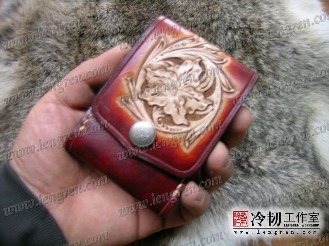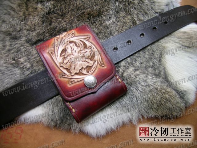 iphone手机套,手工雕刻唐草花,背面可放一张卡片,可挂于腰间。