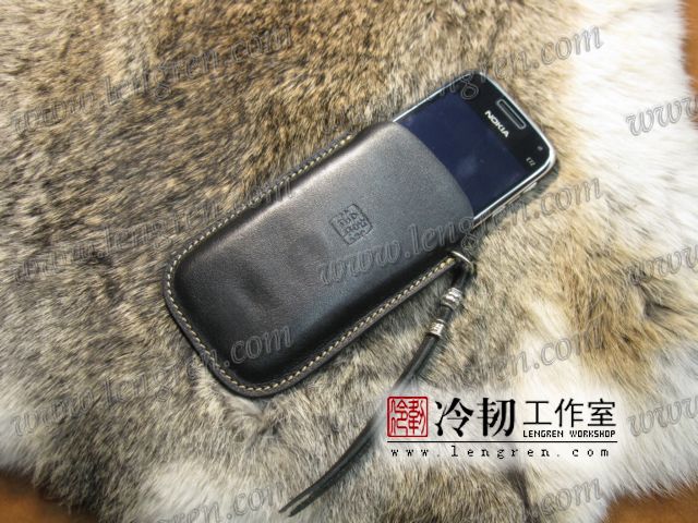 1.5mm头层牛皮缝制,简约风格,适合各种尺寸手机,根据实际尺寸量身定制。配牛皮手机挂绳。