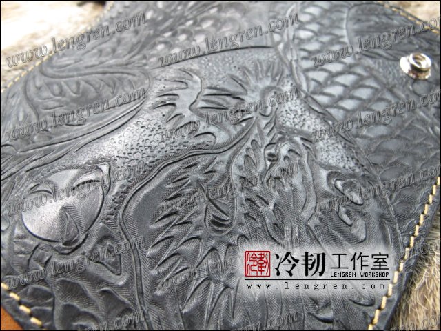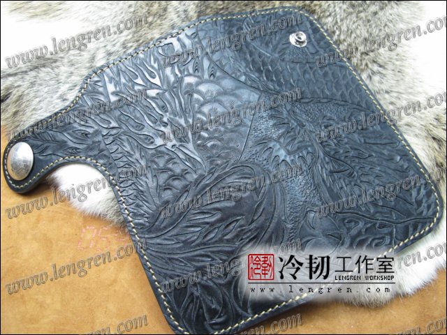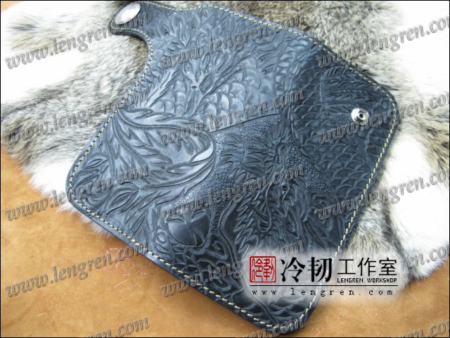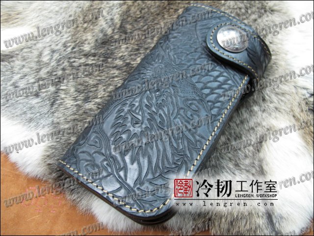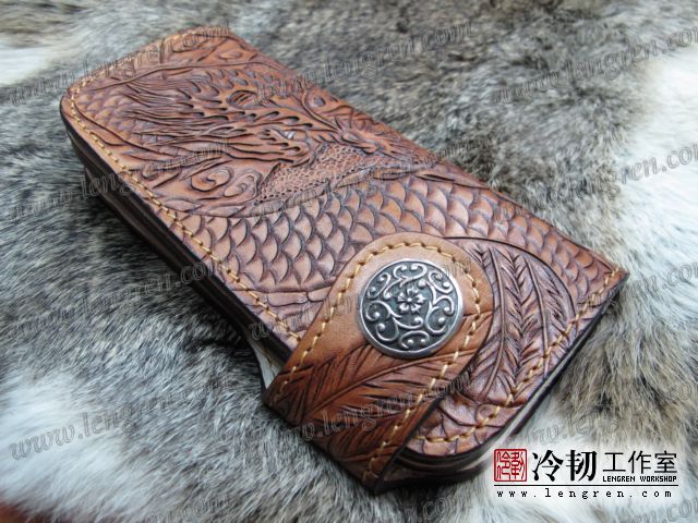 头层牛皮缝制,手工雕刻染色,龙凤纹。10卡位(可选多照片位),拉锁零钱包。925银装饰扣,硬币扣可选。可选配牛皮编织皮链,纯铜链,纯铜金属挂钩。